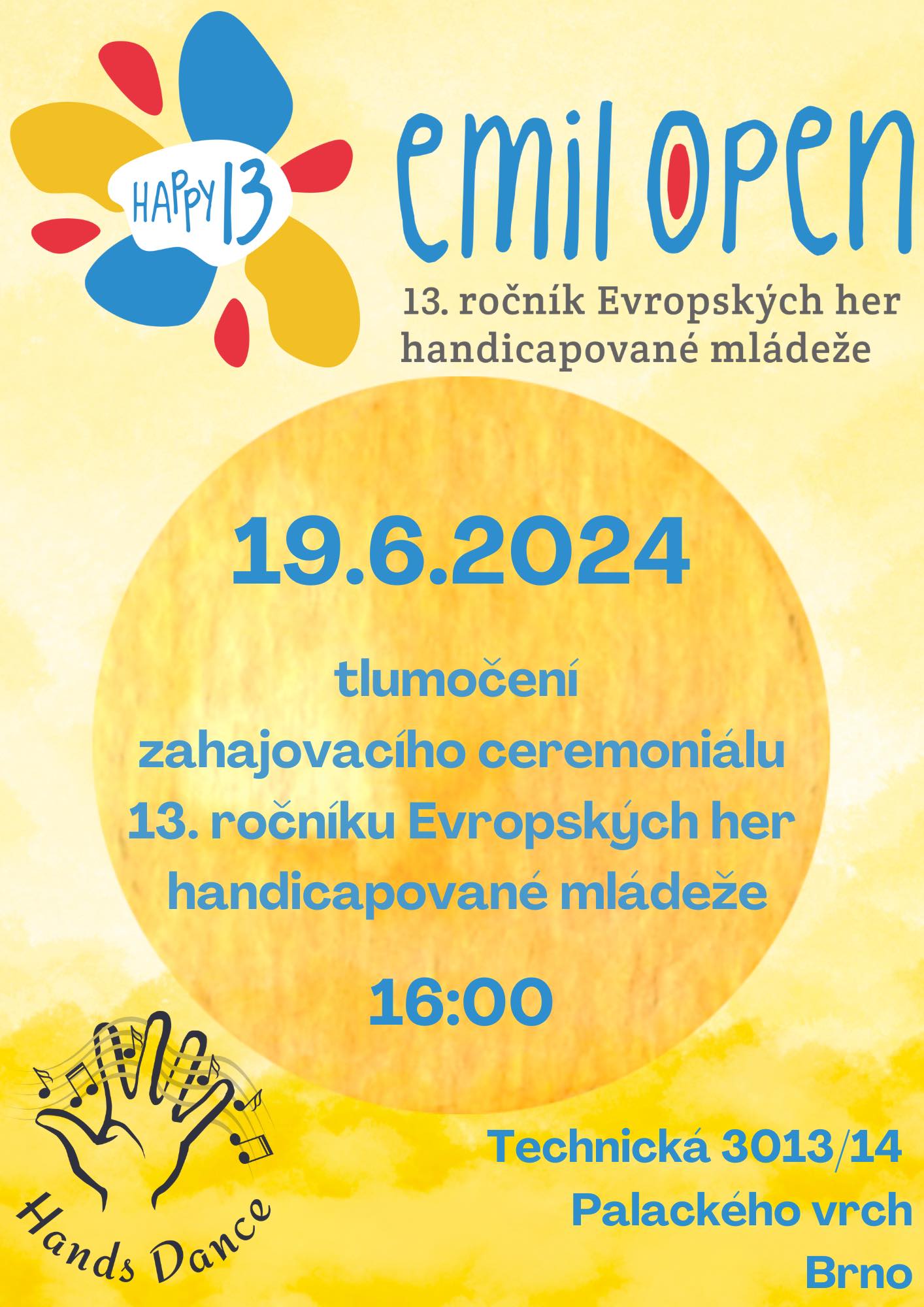 Přijďte na zahajovací ceremoniál 13. ročníku Evropských her handicapované mládeže, který bude tlumočen do českého znakového jazyka a do mezinárodního znakového systému.