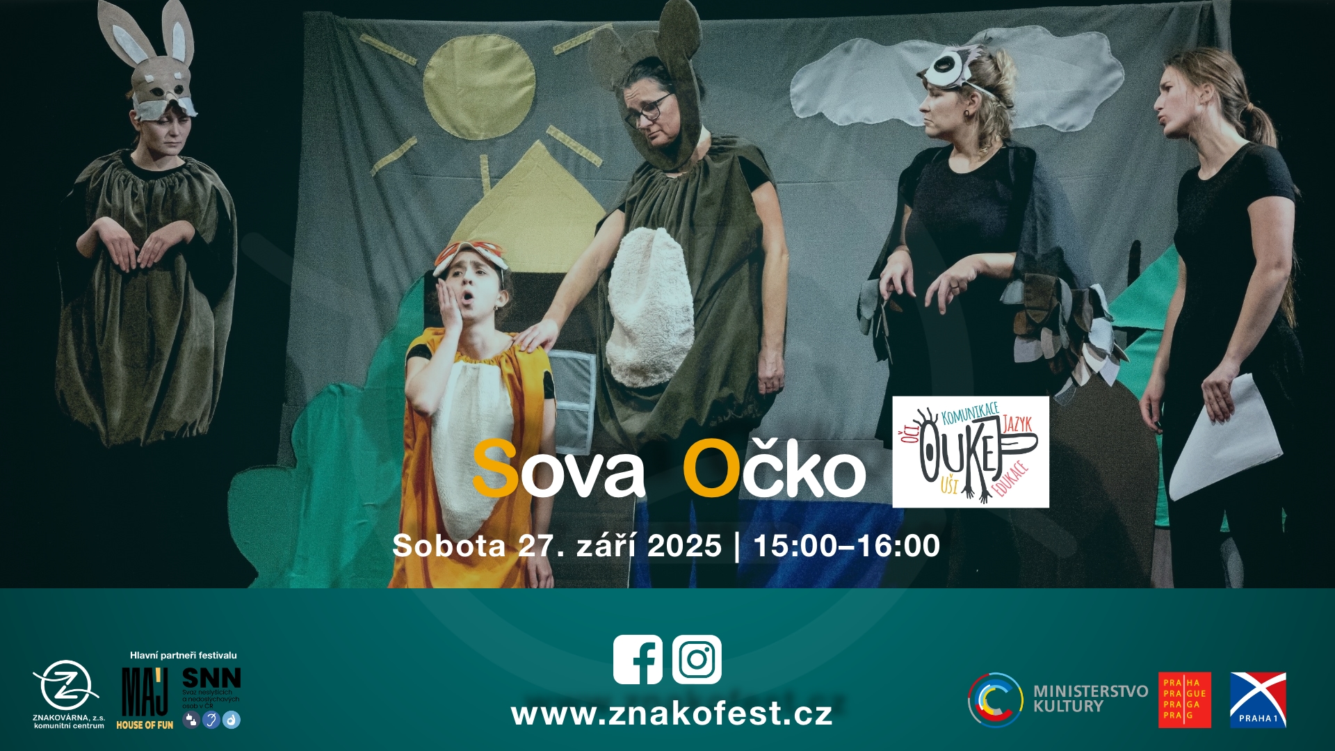 V rámci festivalu ZnakoFest uvede Divadelní spolek OUKEJ láskyplný, poetický příběh o malé sově, která se rozhodla, že už nebude obyčejným nočním ptákem, ale denní sovou. Inscenaci na motivy příběhu slovinské spisovatelky zpracovala neslyšící režisérka Lada Orešnik. Hrají herečky Divadelního spolku OUKEJ ve spolupráci se studentkami Ateliéru divadlo a výchova pro Neslyšící na Divadelní fakultě JAMU. Příběh je vyprávěn v mluvené češtině a českém znakovém jazyce.